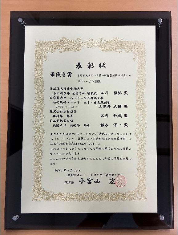 7月24日に開催された「第22回ヒートポンプ・蓄熱シンポジウム」において、建築学科 西川雅弥准教授が、2025年度ヒートポンプ・蓄熱システム運転管理等の改善事例 最優秀賞を受賞しました。